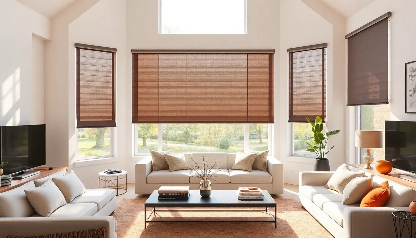 Motorized shades offer effortless control over light and privacy through built-in motors. Users can adjust them via remote controls, smartphone apps, or voice commands. Motorized shades come in various styles, including roller, Roman, and honeycomb, allowing homeowners to select options that best fit their décor. Features such as programmable settings enable users to set specific times for shades to rise or lower, enhancing convenience. These shades increase energy efficiency by minimizing heat gain or loss, ultimately reducing energy bills.
